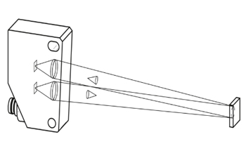 物体中断传感器和反光板之间的光束,从而触发传感器