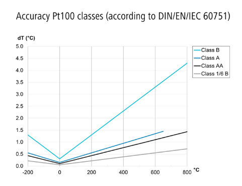DIN EN 60751 标准中所定义的类别定义了允许的偏差以及应遵循此允差的测量范围。